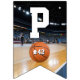 Basketball court happy birthday banner with customisable text and team player number. Great for sports fans, men and boys.