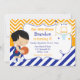 Basketball Cute Black Hair Boy Birthday Party. The background is orange chevron and blue stripes. The words can be changed to your own details