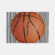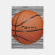 Basketball Design Fleece Blanket featuring a basketball on a striped background, with customisable personalisation and background colour.