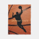 Basketball Design Fleece Blanket featuring the silhouette of a player jumping towards the hoop against a basketball background, with customisable personalisation.