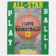 I Love Basketball is written in black typography against orange basketball in centre on a cool sparkling concrete background. Bright Green background. All-Star, Player Number and Name written in yellow gold colour typography. To change background colour to your team colour, click Personalise and click on Background on left-hand side and select from colour palette, or enter a Hex Code Colour Number. To change the School Name and Mascot matching Green font colour to your team colour, click on the text Layer field on left-hand side and select from text colour palette on right-hand side. Play Ball is written in white. Original basketball text saying template Design and Photography © 2017, 2018 TamiraZDesigns.