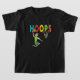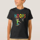 Basketball Hoops design shows player leaping high in the air to slam the ball into the hoop. Fun graphic for basketball fans and players.