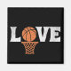 Retro style grunge "Love" text design with orange basketball and basketball net decoration