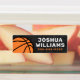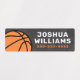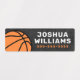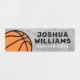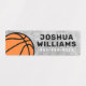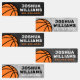 Waterproof basketball property labels featuring a basketball on a rough concrete background in various shades of grey. Customisable name and telephone number on the side. Great for labelling your kid's belongings.