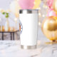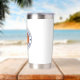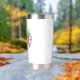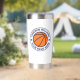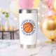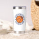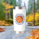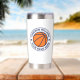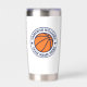 Insulated tumbler featuring a basketball and custom text, for example a name and basketball team, surrounded by a blue border on a white background. Change fonts and colours, move and resize elements with the design tool.