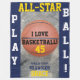 I Love Basketball is written in black typography against orange basketball in centre on a cool sparkling concrete background. Navy Blue background. All-Star, Player Number and Name written in yellow gold colour typography. To change background colour to your team colour, click Personalise and click on Background on left-hand side and select from colour palette, or enter a Hex Code Colour Number. To change the School Name and Mascot matching Blue font colour to your team colour, click on the text Layer field on left-hand side and select from text colour palette on right-hand side. Play Ball is written in white. Original basketball text saying template Design and Photography © 2017, 2018 TamiraZDesigns.