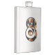 The product is a good size and came exactly as it was pictured. The lid is not attached to the flask, which could be dangerous on drunken nights... The print came out surprisingly well and looks very sharp. Would definitely recommend.