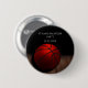 The button features a bold, black background that makes the vivid orange basketball pop. The dynamic design captures the energy and excitement of the court, with the ball casting a shadow that adds depth to the scene. The details are presented in a striking white colour, ensuring they stand out against the dark background.