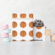 This basketball sports themed wrapping paper features a repeating pattern of orange and black basketballs. Click "Customise It" to select a background colour you like.