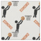 Basketball player with ball and your name personalised fabric that displays a minimalist icon of a black silhouette of a basketball player trying to put the orange ball in the basket and your text on white background. Some elements courtesy of vectorportal.com.