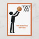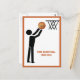 Basketball player with ball vertical postcard showcasing a minimalist icon of a black silhouette of a basketball player trying to put the orange ball in the basket and your text on white background with a border in the same colour of the ball. This cool design is a template and it is completely customisable. The perfect gift for the basketball player or lover in your life. Some elements courtesy of vectorportal.com.