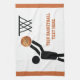 Basketball player with ball kitchen towel that showcases a minimalist icon of a black silhouette of a basketball player trying to put the orange ball in the basket and your text on white background with a border in the same colour of the ball. This cool design is a template and it is completely customisable. Personalise it and add the text “Best basketball player” or monogram, name or your message. Some elements courtesy of vectorportal.com.