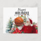 Basketball Santa Claus with Snowman for Christmas Holiday Postcard