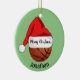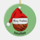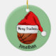 Basketball Santa Hat Ornament with customizable background color and text, front and back.