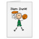 Boys basketball stick figure design T-shirts, mugs, cards, basketball keychains, buttons, tote bags, hoodies, and other basketball apparel and gifts featuring a stick figure basketball player in a green jersey and text that reads "Slam Dunk"!