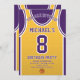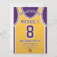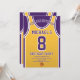 Celebrate your special day with this Basketball Jersey Birthday Invitation, designed for true basketball fans! Featuring a bold jersey design inspired by the iconic purple and gold colours, this invite is perfect for kids, teens, and adults who love the game. Personalise it easily with your name, age, party details, and even team number in just a few clicks. Available in multiple sizes, printed on premium quality paper with a wide range of finishes to match your style. Choose from different paper types, fast printing, and quick shipping so your invitations arrive on time. Whether it’s for a sports-themed party or a Lakers fan celebration, this invite is the perfect way to get your guests excited.