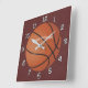 A great clock for all basketball fans -- young or old. The design features a large basketball image on a deep red, textured background with placeholders for a name and a small photo. The name text is easily changed by using the template. For other desired changes (different type font, colour, size or placement) select "Personalise this template" then select "Edit using Design Tool." Also use the design tool if you wish to change the size of the basketball image. Check out the options section on the right for different clock styles and for a different colour of clock hands (black or grey).