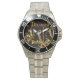 Has heft and feel of expensive stainless steel quartz watches. Good band with safety catch. I removed links, which is easy because engraved arrows show direction to push the linking pins. As always by this seller, the image (a railroad logo) is a perfect reproduction of my emailed image, and is precisely spaced and aligned.