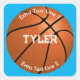 Basketball, White Name, 2 Text Lines, Sky Blue Square Sticker