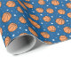 Wrapping paper featuring a pattern of basketballs and white stars on a dark blue background. Ideal for a basketball fan, coach or player.