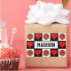 Basketballs & Hearts Custom Player Name Fun Sports Rectangular Stickers: Make your own customised basketball gift wrapping stickers for volleyball players, coaches and fans, featuring a beautiful black and white chequered pattern with basketballs on the white squares, and bright red hearts on the black squares. These add a fun and personal touch to gifts for basketball lovers!