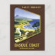 Great vintage travel poster for the Basque Coast via train. Lovely coast with swimmers in the ocean as seen from a train or bus.