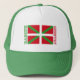 Basque Country in a sports style typeface together with the Basque national flag, the "ikurriña".