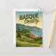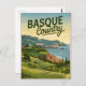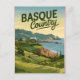 A captivating and nostalgic depiction of the Basque Country, a unique region in northern Spain known for its stunning landscapes and rich cultural heritage. The design features the dramatic coastline, rolling green hills, and charming towns like San Sebastián and Bilbao. Rendered in a vintage style, the artwork evokes the region's vibrant traditions, delicious cuisine, and picturesque scenery, inviting viewers to explore its enchanting charm and diverse culture.