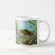 A big-mouth bass fish in a near magical setting of grass and sparkling sand. By Amanda Diehl, Paxdomino Designs.
