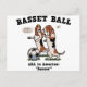 Two Basset hounds playing soccer, saying,"Estupide Americans," "Si." With, "Basset Ball - aka in America: "Soccer" text. Colour, retro-looking art, on t-shirts, hoodies, cards, gifts.