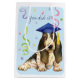 Congratulate your favourite graduate with a gift in a bag featuring a cute, happy Basset Hound graduate wearing a mortarboard amid a flurry of confetti.