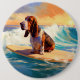 Basset Hound Beach Surfing Painting 6 Cm Round Badge