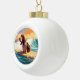Basset Hound Beach Surfing Painting Ceramic Ball Christmas Ornament