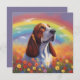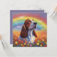 A personalised Basset Hound memorial sympathy card with a beautiful painting of a Basset Hound on a heavenly hill with a beautiful rainbow overhead. Symbolising the Basset Hound dog has passed the rainbow bridge to doggy heaven. You can personalise it with your own Basset Hound dog's name or any other text on the back side of the card. Makes a special memorial or sympathy gift for any Basset Hound dog lover if their dear dog has passed.