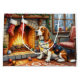 This cozy Christmas illustration showcases a lovable Basset Hound sitting beside a warm fireplace, wrapped in twinkling Christmas lights with festive stockings hanging above. The breed’s signature long ears and gentle expression add extra charm to this heartwarming holiday scene. Ideal for Basset Hound lovers, seasonal décor fans, and Zazzle shoppers searching for unique Christmas art featuring their favorite breed.