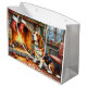 Basset Hound Fireplace with Christmas Lights Large Gift Bag