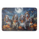 Unleash the spooky spirit with this eerie Halloween design featuring a pack of dogs under a dark, moonlit sky, surrounded by flying bats and glowing pumpkins. Perfect for those who love a touch of frightful fun with their furry friends!