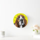 Basset Hound with sad eyes on a yellow background that can be customized, color of clock numbers and dots can be changed too