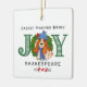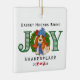 This ornament features a cute Bassett Hound in front of a wreath. The Bassett Hound is a watercolor design and will often have a softer focus, like a watercolor painting when printed. The wreath makes up the letter “O” in joy. Above the Bassett Hound, it reads, “Bassett Hounds Bring.” The complete message on the ornament reads, “Bassett Hounds Bring Joy.” You personalise the ornament with your dog’s name. Under your dog’s name, there is a candy-striped bone and the year 2024. The candy-striped dog bone appears again on the back of the ornament at the lower portion of the ornament. You can type a sweet note to your fur baby on the back if you desire.