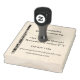 Here is the elegant solution for any bassoonist: imprint your music, papers, books, labels, envelopes, and contact cards using this stylish and practical stamp. On the left side appears a vintage image of a bassoon; to the right of that are numerous lines of text for specifying all desired personal information. Simply edit the placeholder content with the appropriate details, removing any unnecessary lines of text.