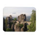 Rectangular souvenir photo magnet of the stone Bastei Bridge (Bastei Brücke) over the Elbe river connecting the iconic rock formations of the Elbe Sandstone Mountains near Dresden in the national park Saxon Switzerland (Sächsische Schweiz) in east Germany.