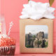 Souvenir photo sticker of the stone Bastei Bridge (Bastei Brücke) over the Elbe river connecting the iconic rock formations of the Elbe Sandstone Mountains near Dresden in the national park Saxon Switzerland (Sächsische Schweiz) in east Germany.