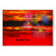 Bastille Day card with a very bright and cheerful sunset sky in red, black and gold, and fireworks over the sunset. Thanks to Pixabay for the fireworks.