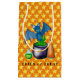 Adorable Halloween design features a bubbling cauldron, of witches brew, with bat. The background is a deep orange with a yellow star pattern. The orange background and text can be customised.