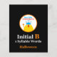 The “Bat” flashcard is one out of 8 Halloween themed full color word and picture flashcards, each for a one syllable word starting with the letter “B”. Suitable for practising the letter “B” in the initial position for articulation and sound production particularly in support of speech and language development.