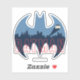 Round Bat Logo with Gotham City skyline and Bat Signal in the sky.