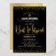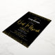 Be proud, rejoice and showcase this milestone of your favourite Bat Mitzvah! Send out this stunning, modern, sophisticated, personalised Hebrew name invitation for an event to remember. Graphic real gold foil calligraphy script, Star of David, and confetti dots, overlay a rich, dramatic, black background. A faux gold Star of David overlays a faux metallic gold ombre background on the back. Personalise the custom text with your Bat Mitzvah’s name, Hebrew name, date, and venue information. Guaranteed to add stylish fun to her special occasion!
