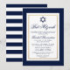 Bat Mitzvah Blue and White Stripes Invitation Gold