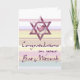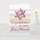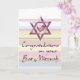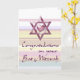 Cute and pink this is a nice card to send to a young girl who is celebrating her Bat Mitzvah, and the new chapter of her life. Features a pink Star of David, and a pink heart in the centre. Pastel striped background, and a nice verse inside...which you can customise.