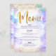 Be proud, rejoice and showcase this milestone of your favourite Bat Mitzvah with a celebration to be proud of! Tempt your guests with this stunning, modern, party meal menu, featuring sparkly gold faux foil and glitter dots and typography script against a soft purple watercolor background. Her name, date of event, and a gold foil Star of David, overlaying a soft purple watercolor background, are on the back. Personalise the custom text with all your menu and other information. Guaranteed to add stylish fun to her special occasion!